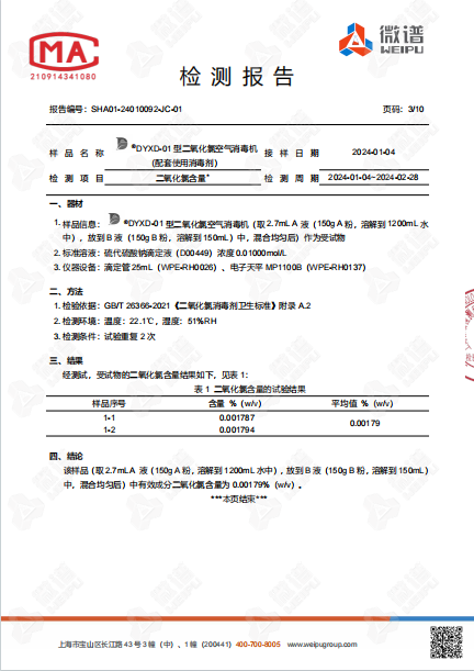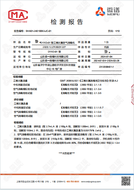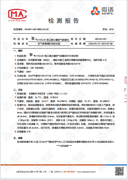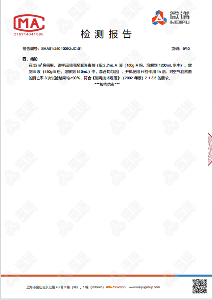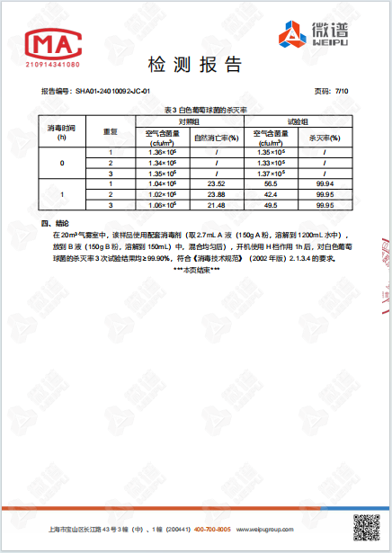 空氣消毒機檢測報告