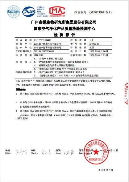 空氣消毒機(jī)檢測(cè)報(bào)告